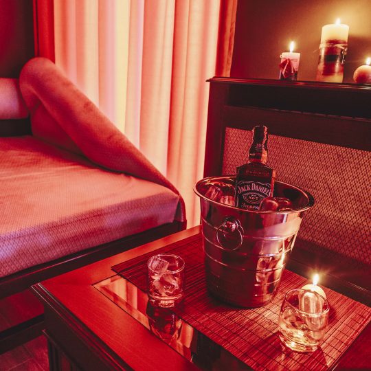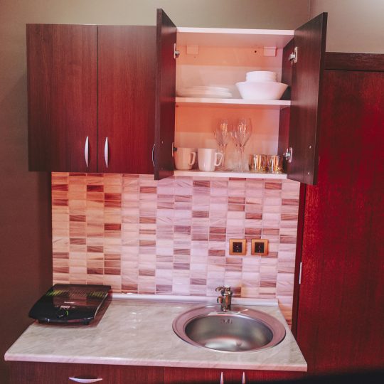Udoban I prostran bračni krevet u odvojenoj sobi, hidromasažna kada za dve osobe, odvojena soba sa 2 odvojena singl kreveta, mogućnost dodavanja još jednog dodatnog ležaja, odvojeno kupatilo sa tuš kabinom, odvojena kompletno opremljena mini čajna kuhinja sa indukcionim rešoom, mini bar frižiderom, WIFI, KTV, LCD TV, fen za kosu.