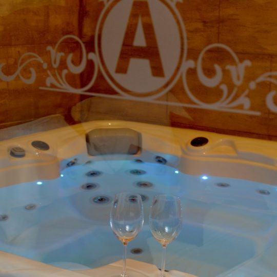 Hidro-masažna kada za dve osobe pogodna za romantično uživanje ili opuštanje posle napornog dana.